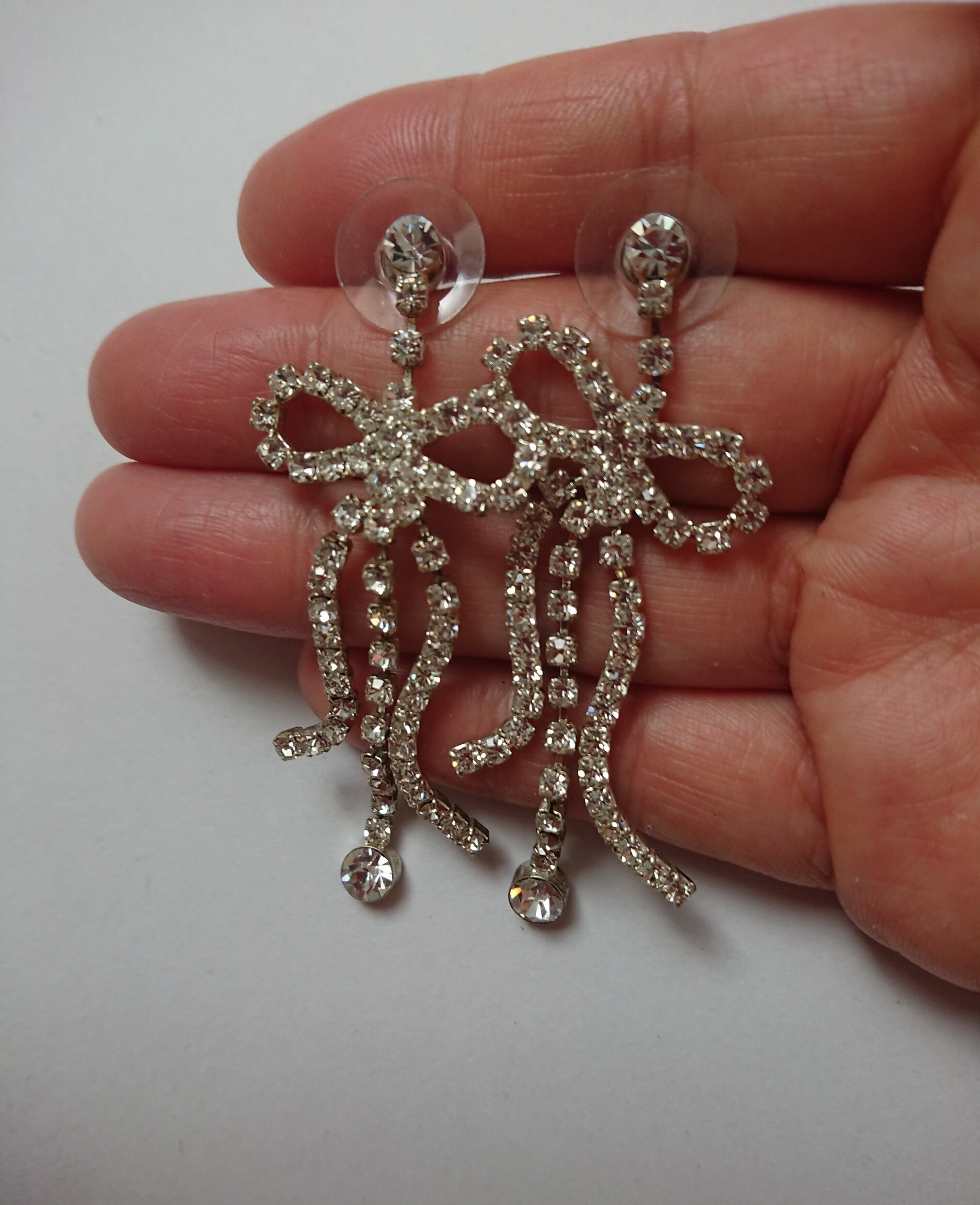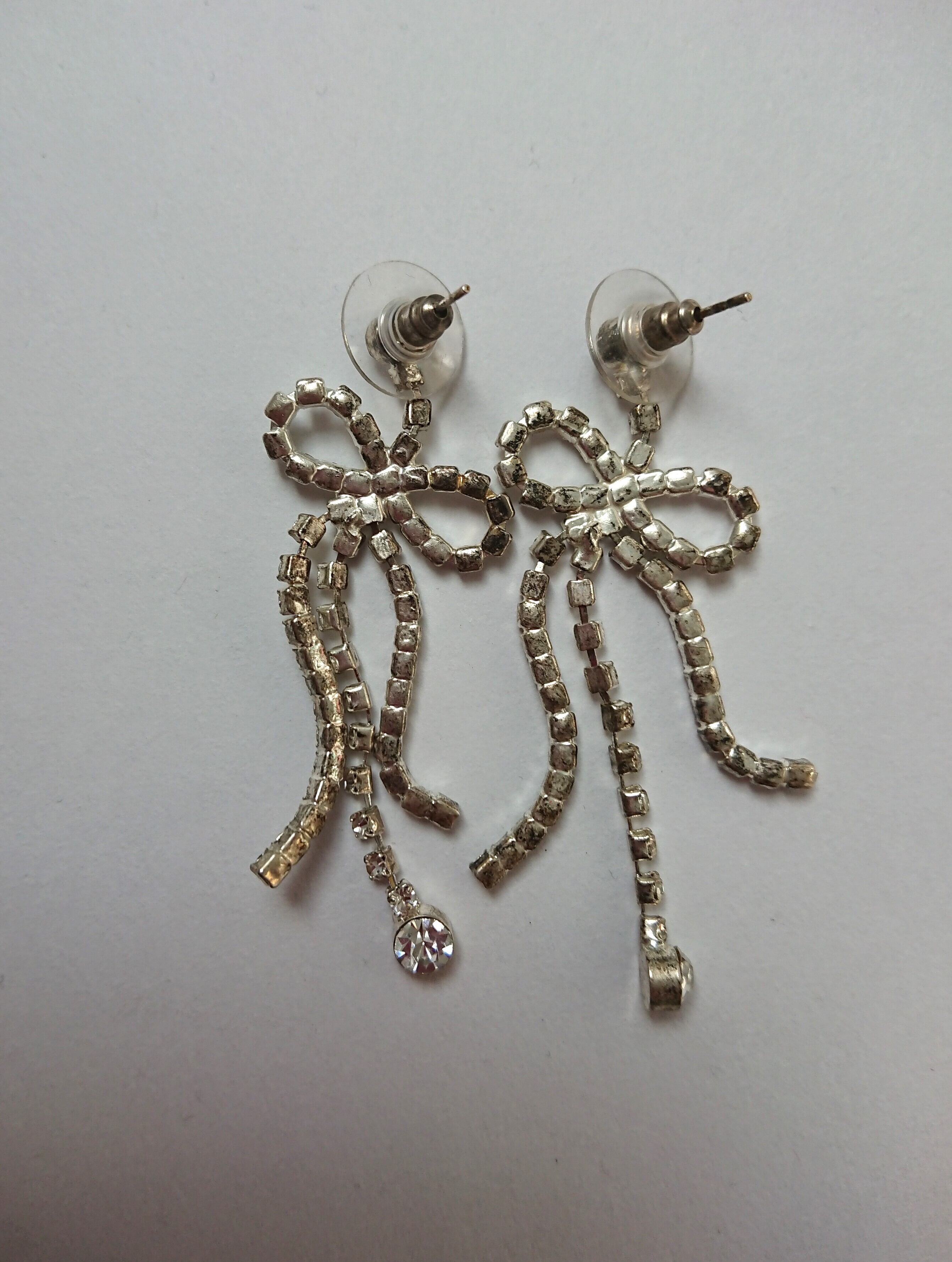 シルバーメタルにラインストーンのリボンデザインがとても素敵なピアスです。