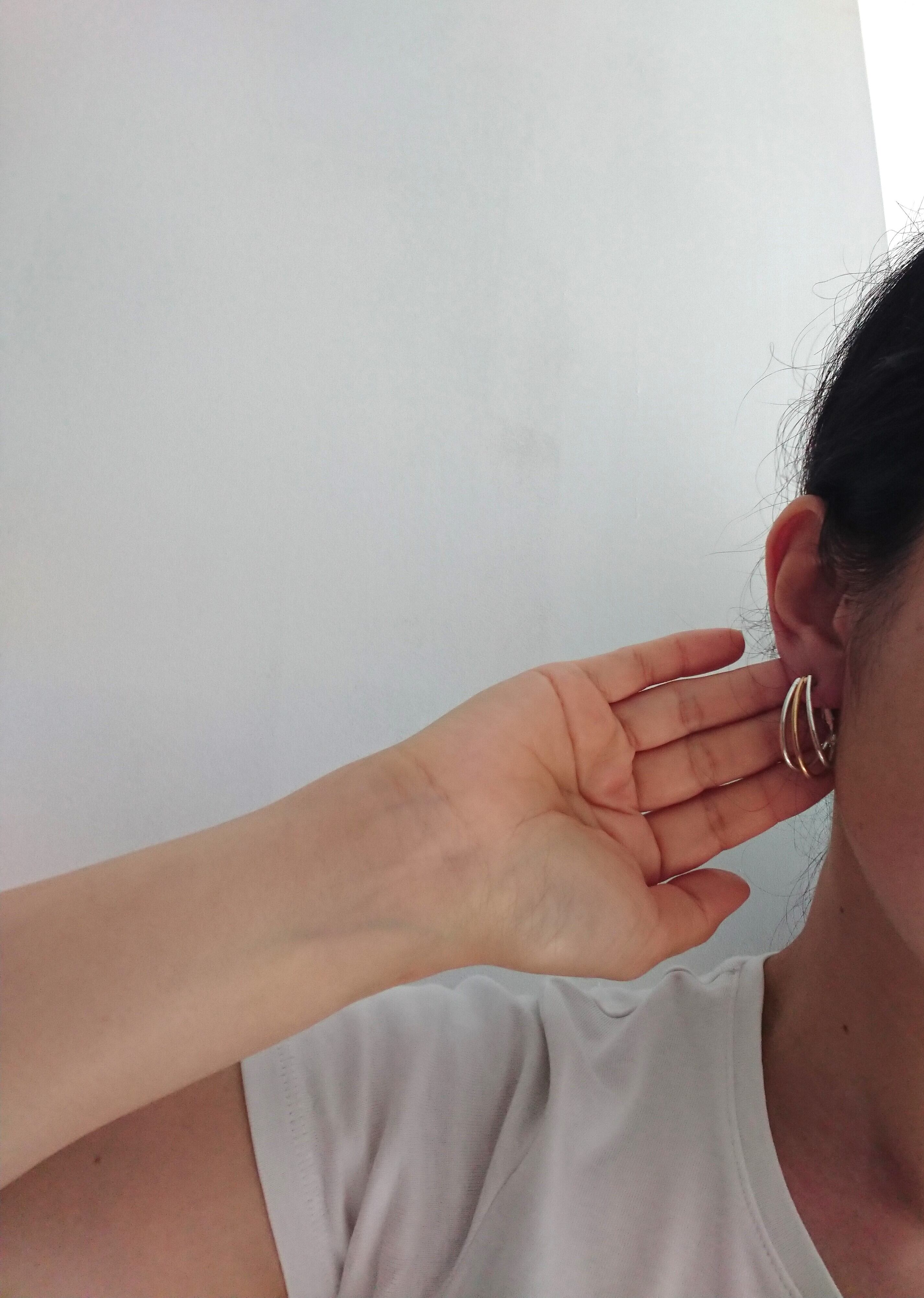 シルバーメタルとゴールドメタルとメタルの3色のフープのデザインがとても素敵なピアスです。