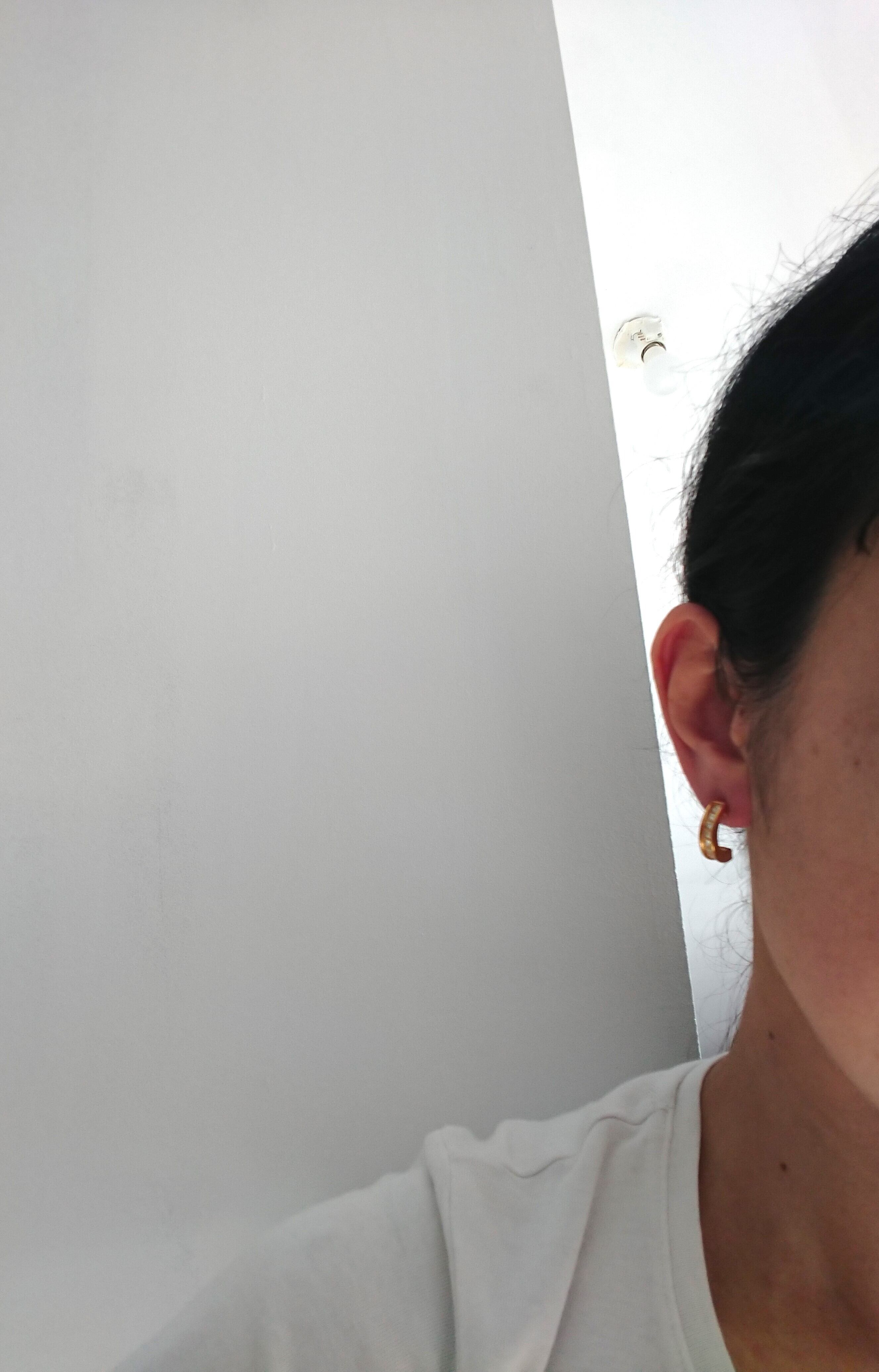 ゴールドメタルにラインストーン付きのフープのようなデザインがとても素敵なピアスです。