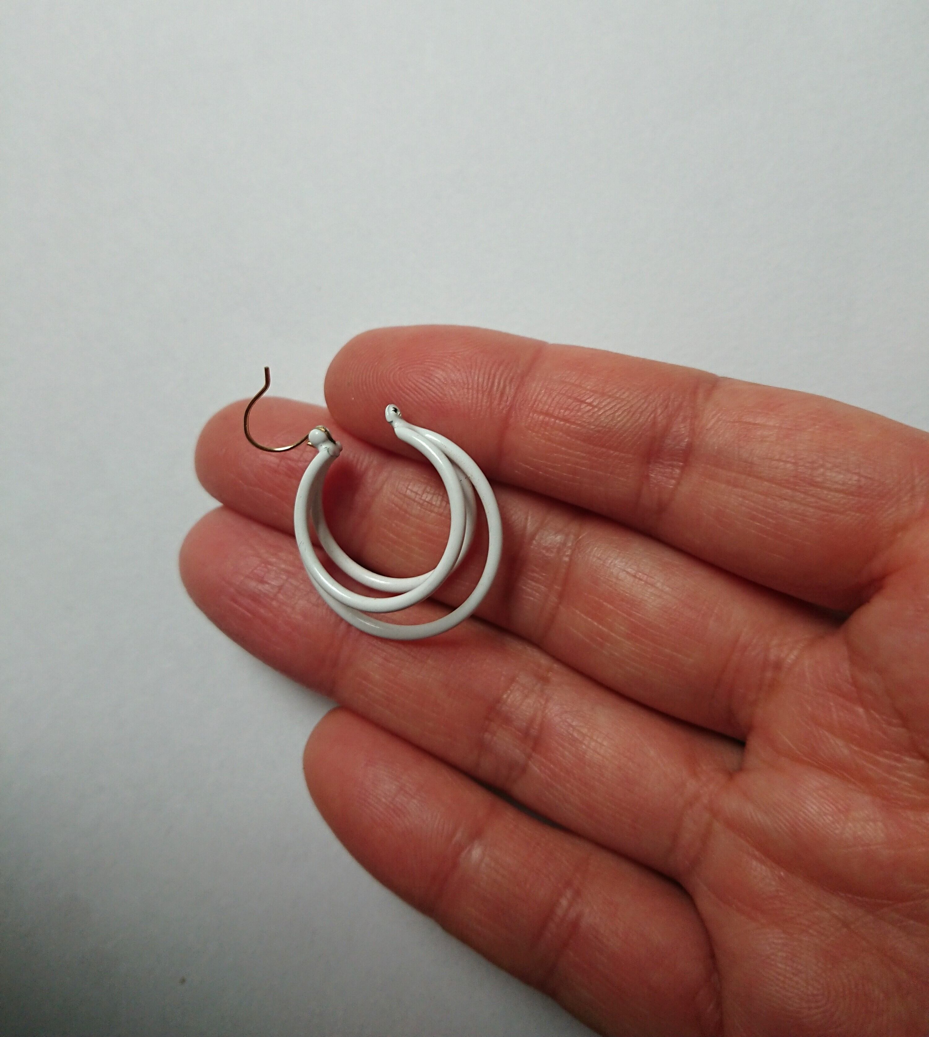 ゴールドメタルにホワイト色のフープデザインがとても素敵なピアスです。