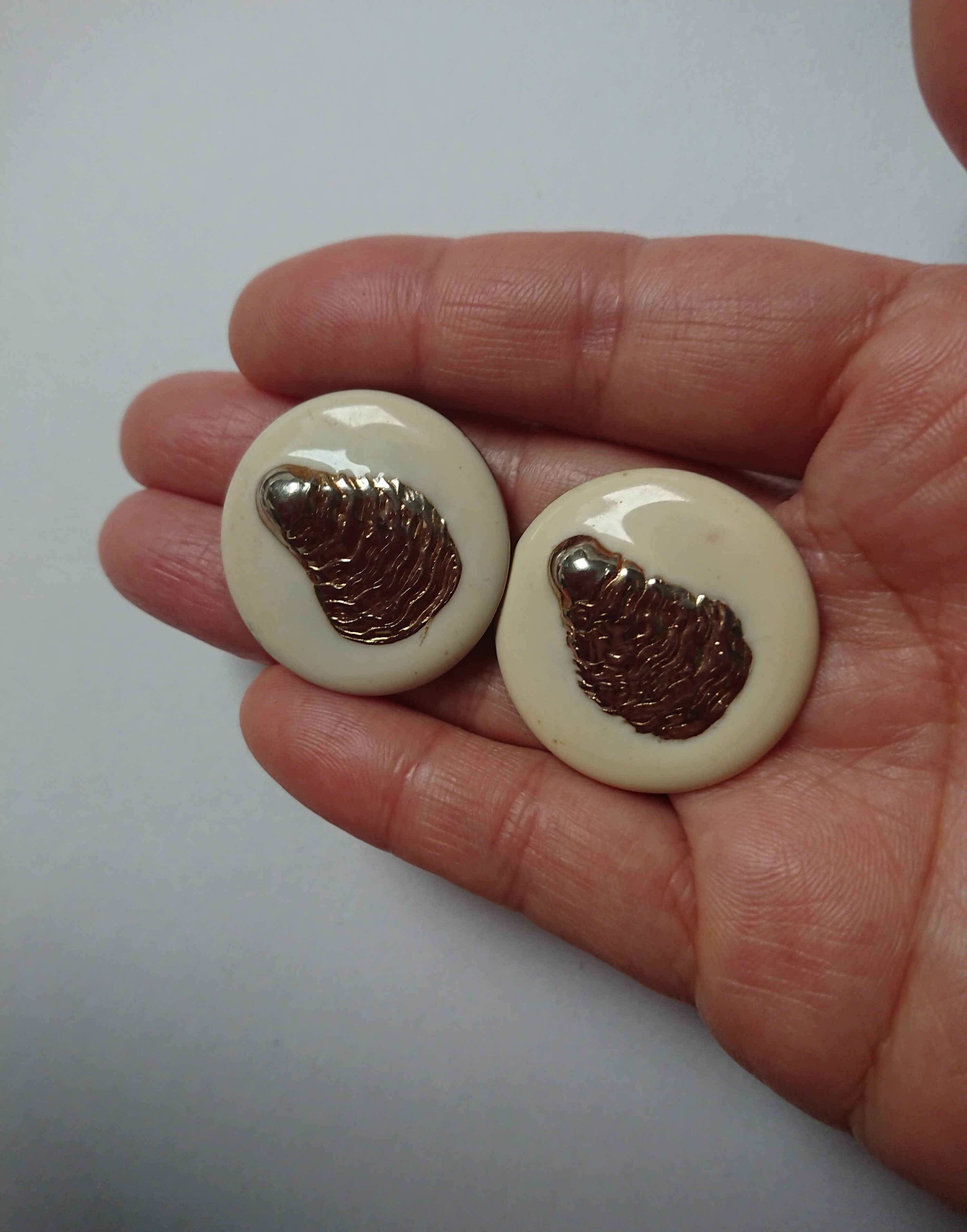 ゴールドメタルにホワイト色とゴールド色のデザインがとても素敵なイヤリングです。