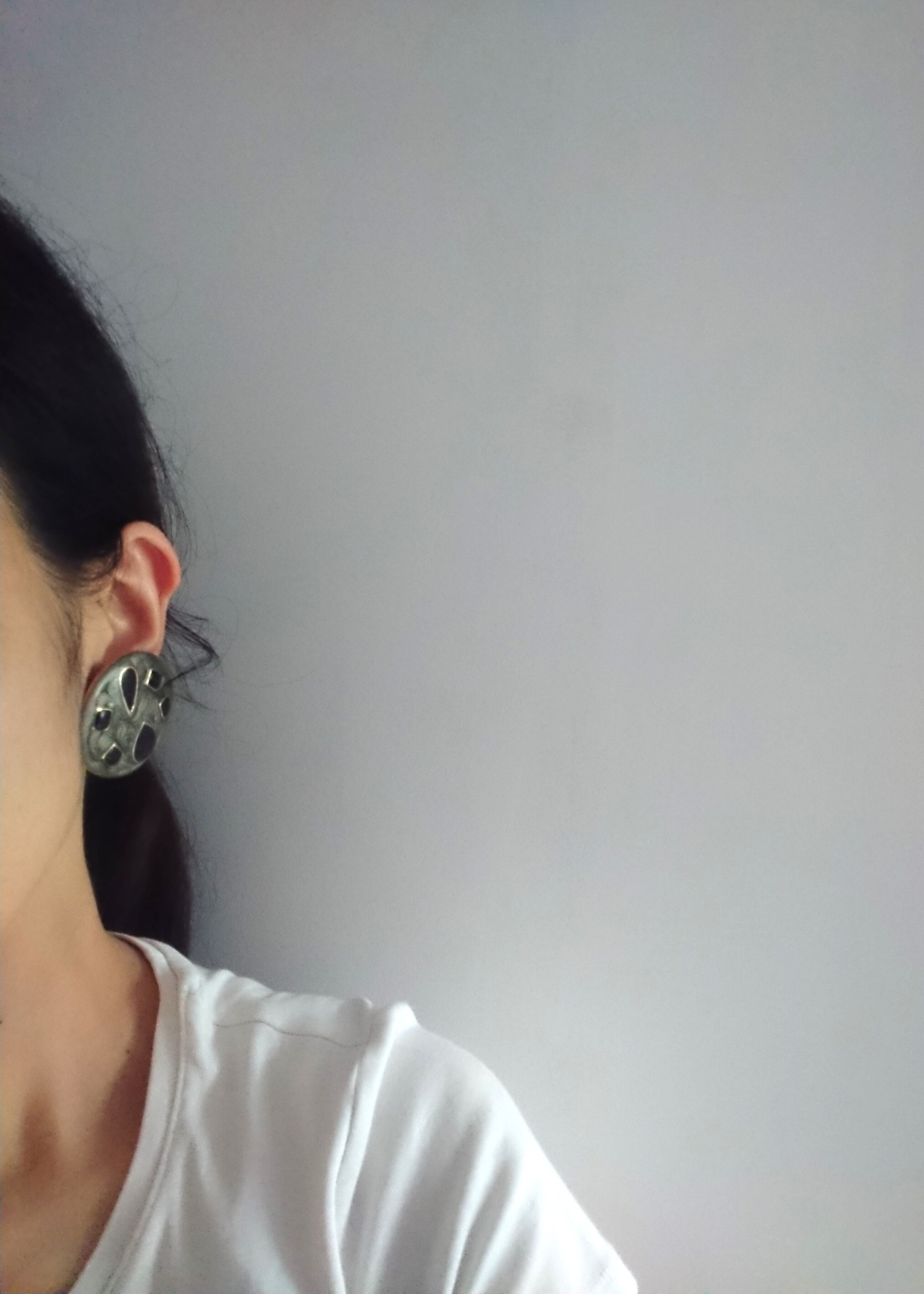 ゴールドメタルにグレー色とブラック色の個性的デザインがとても素敵なイヤリングです。