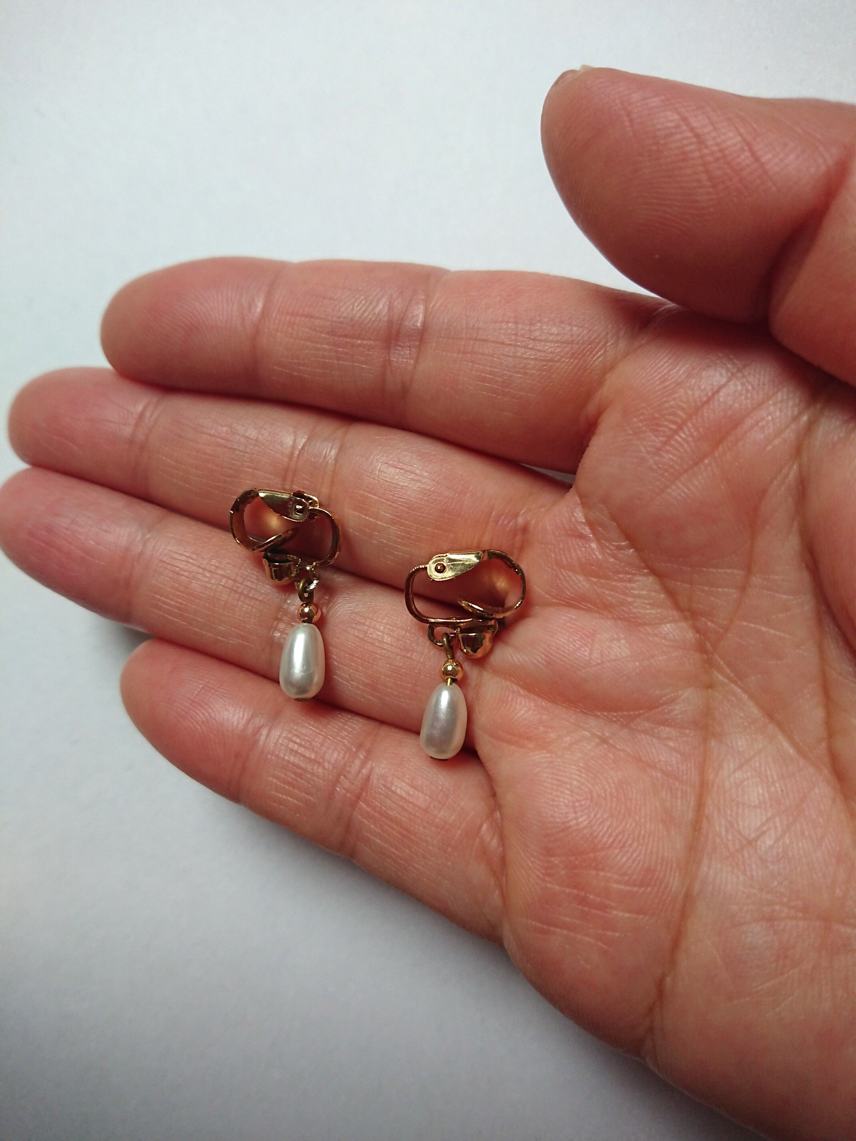ゴールドメタルにドロップ型のパールデザインが魅力的なイヤリングです。