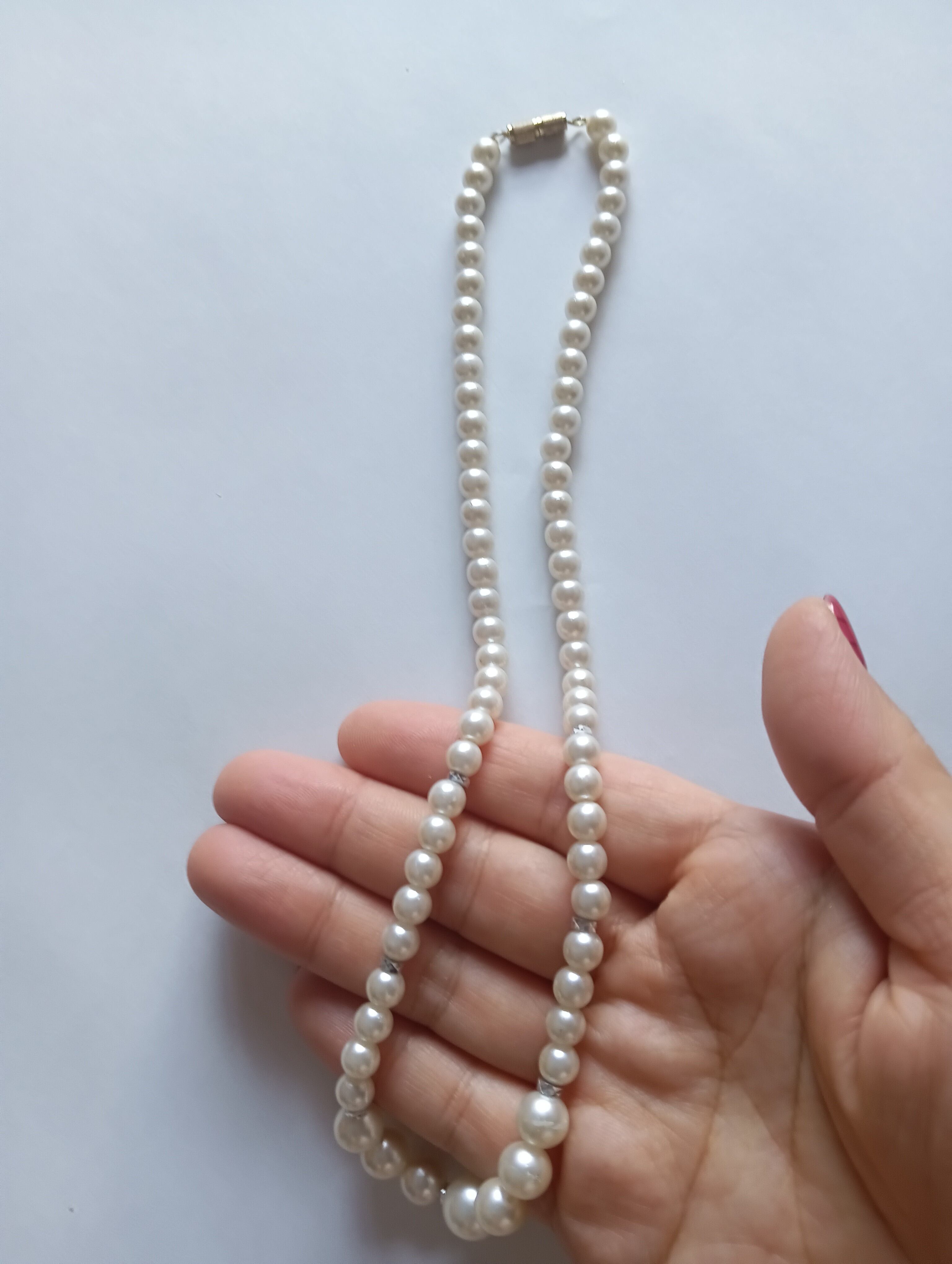 パールホワイトの輝きが特徴のネックレスです。