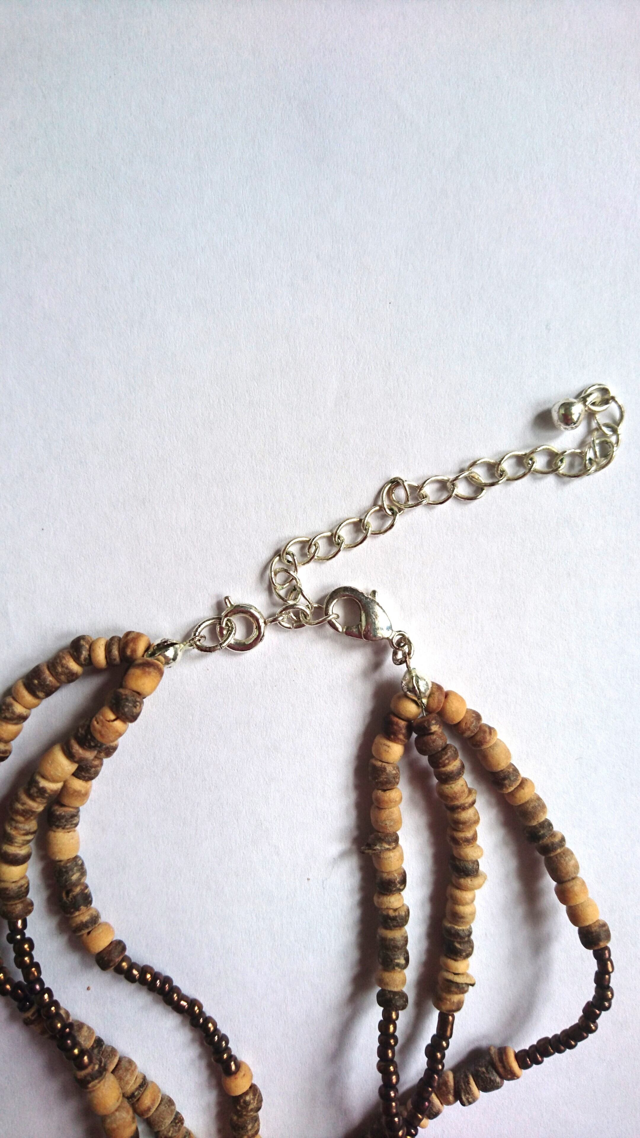シルバーメタルにウッドビーズのデザインが素敵なAVONのネックレスです。