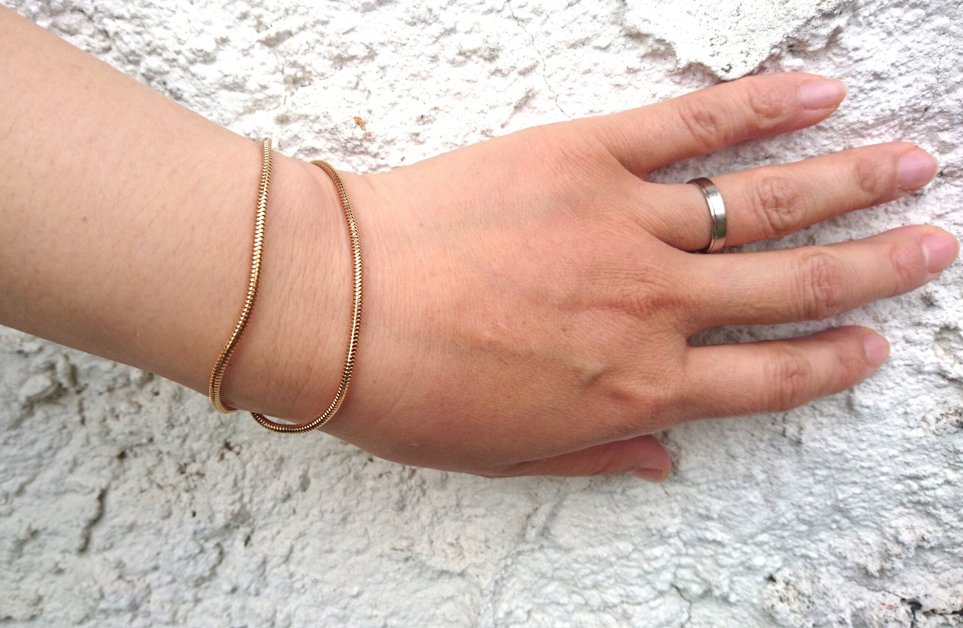 ゴールドメタルで2連のブレスレットがとても素敵です。