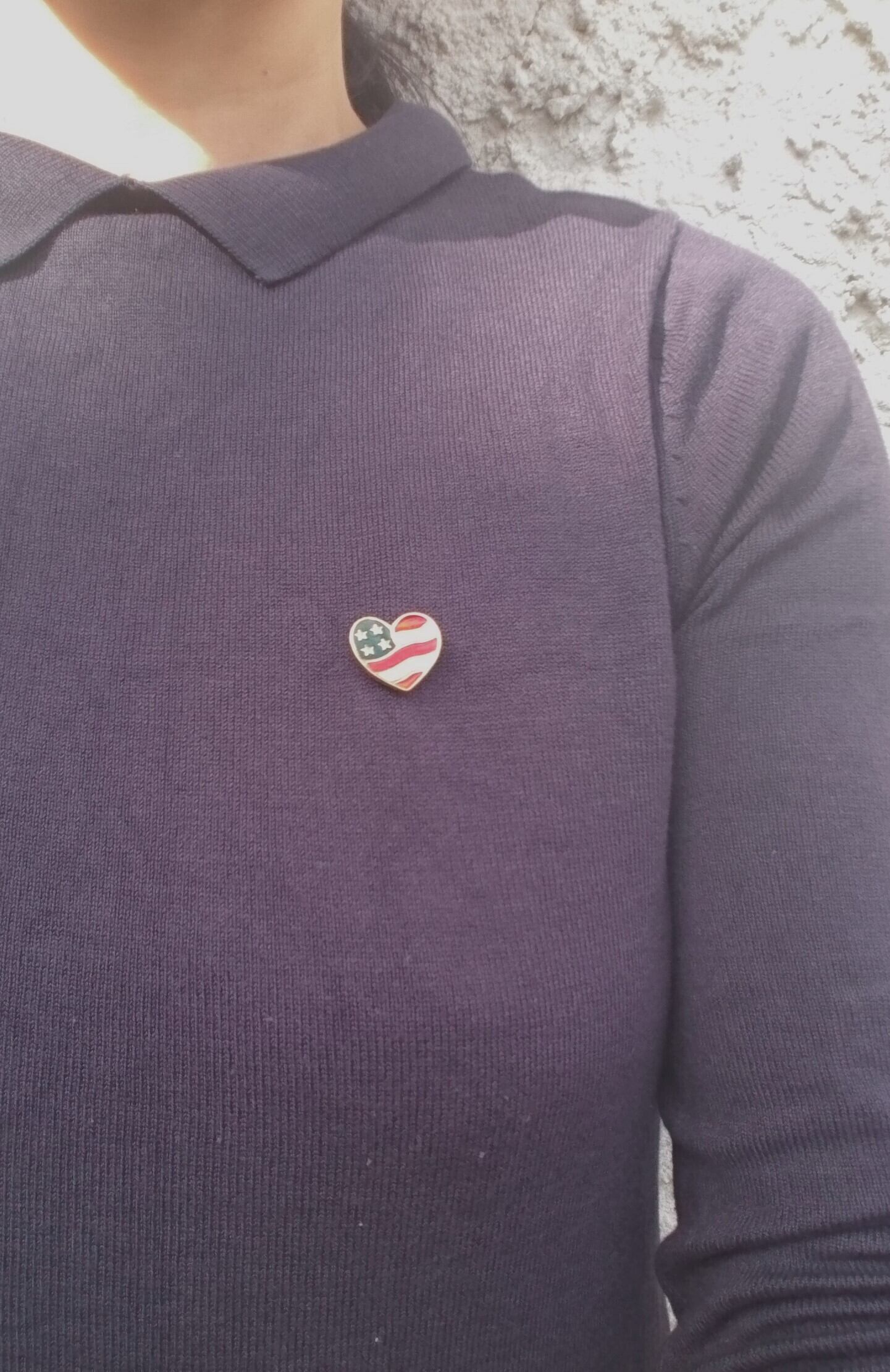ゴールドメタルでハートの形をしたアメリカ国旗のデザインが素敵なAVONのブローチです。