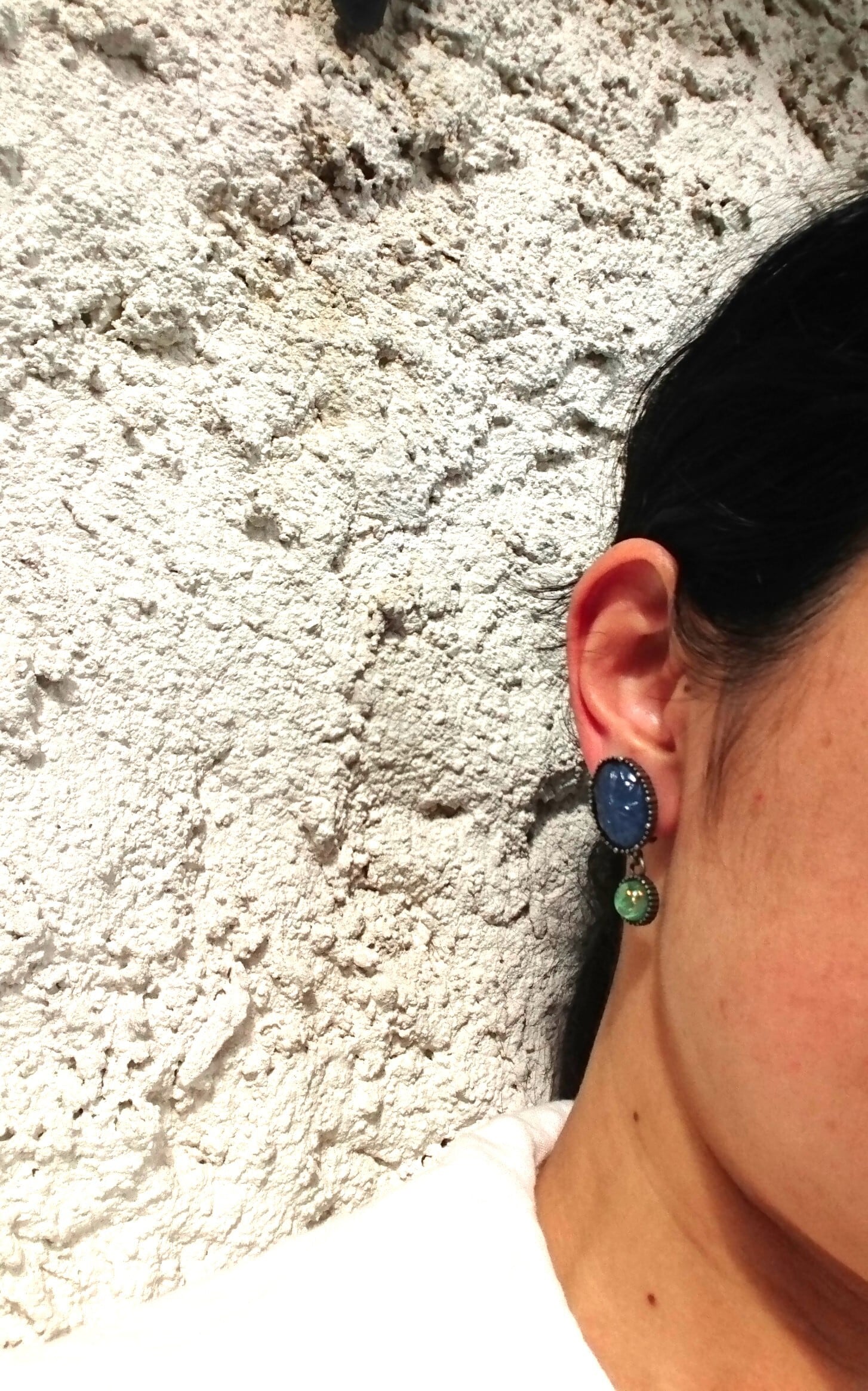 ブルー色のガラスのような素材にお花のデザインがとても素敵なAVONのイヤリングです。