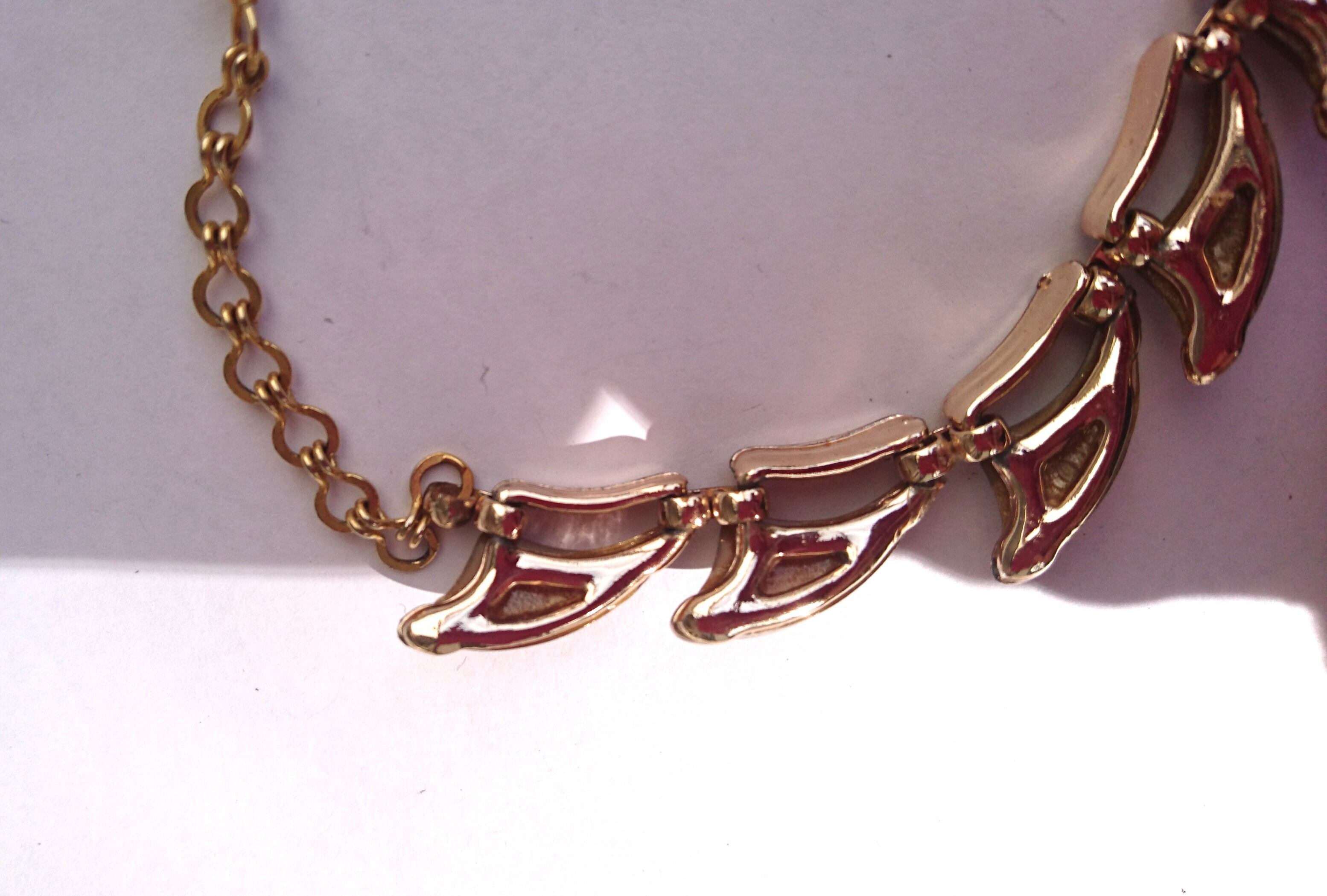 ゴールドメタルにライトブラウン色のデザインが素敵なネックレスです。