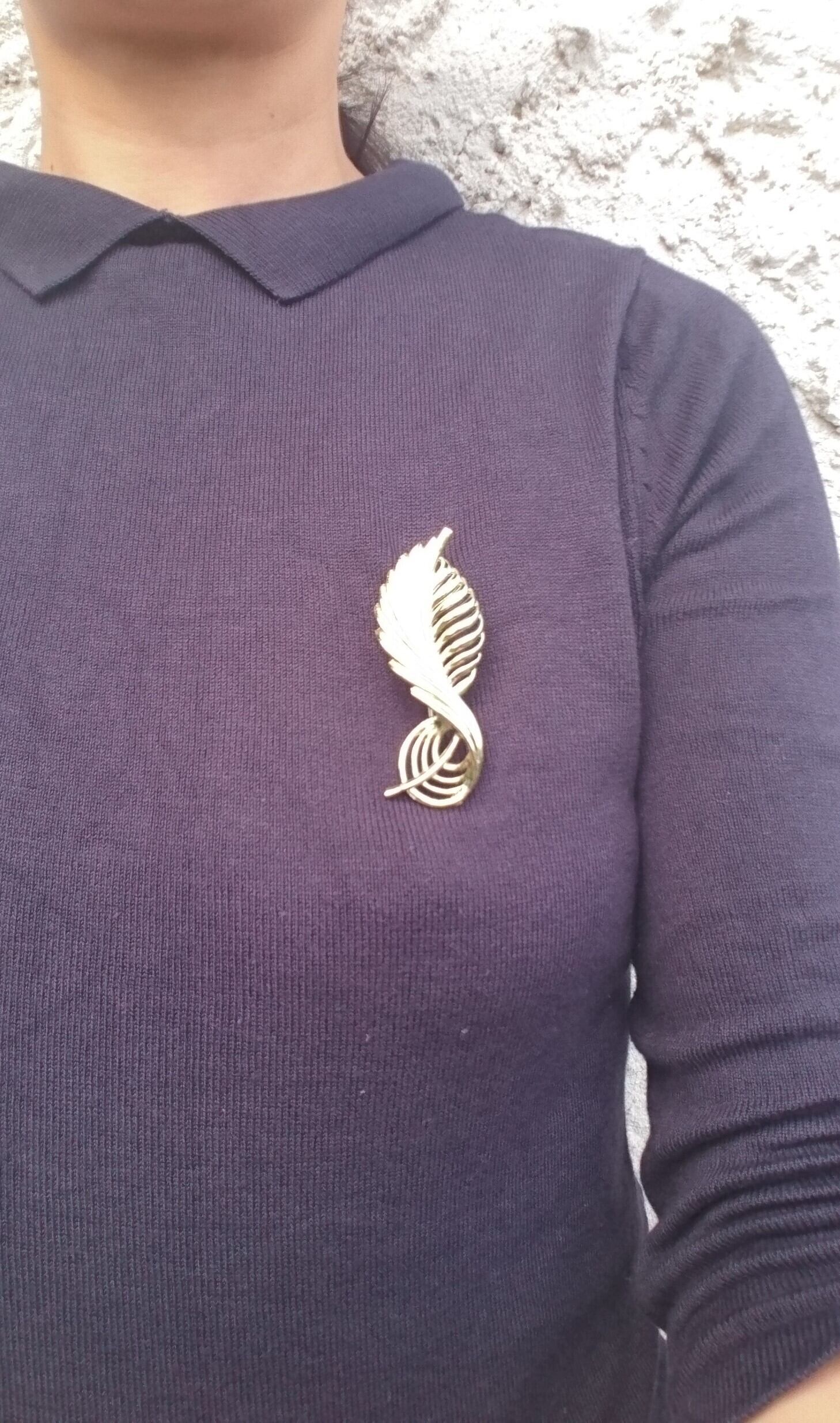 ゴールドメタルに大きなツイストリーフのデザインがとても素敵なブローチです。