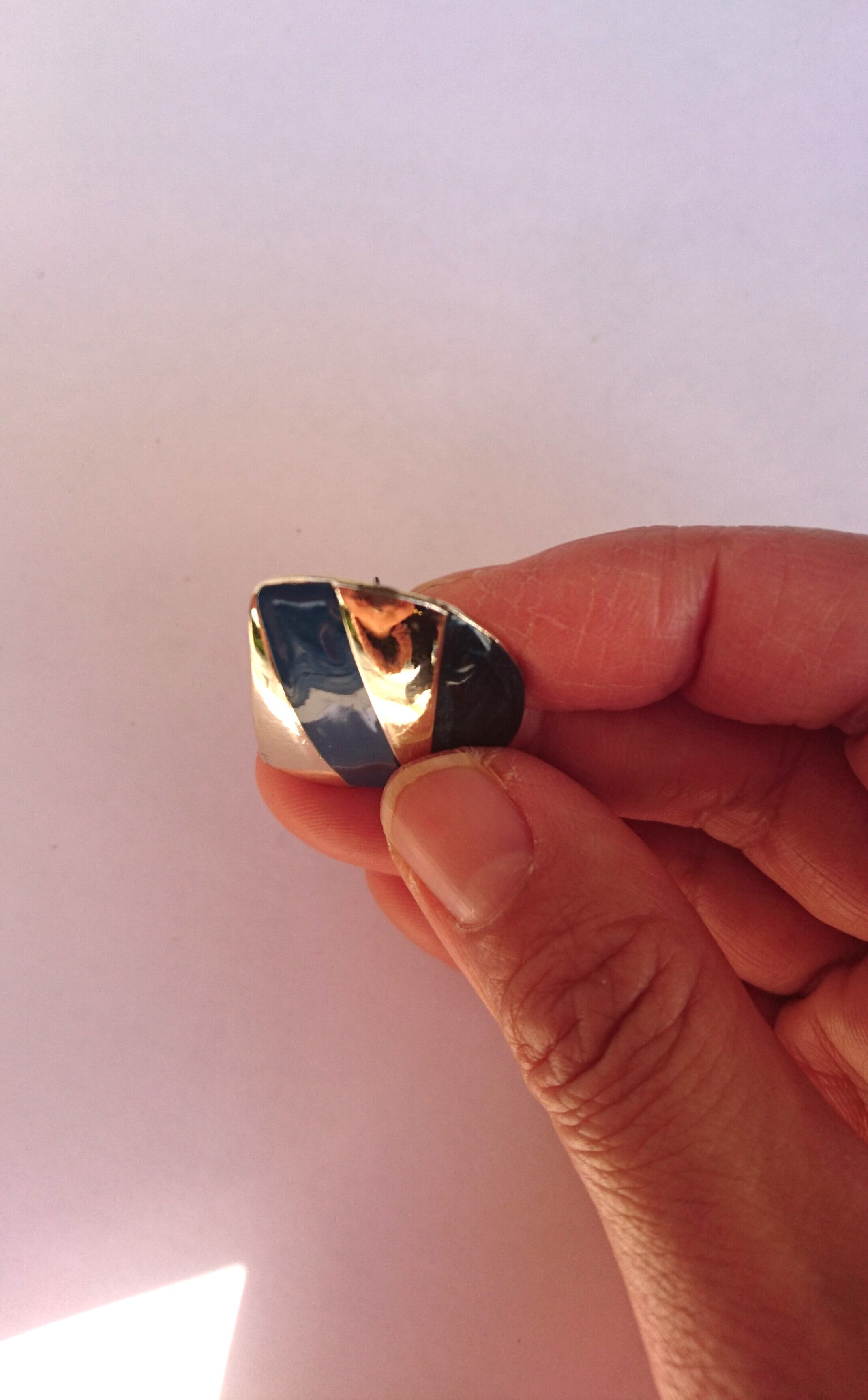 シルバーメタルとブルー色のストライプのようなデザインがとても素敵なピアスです。