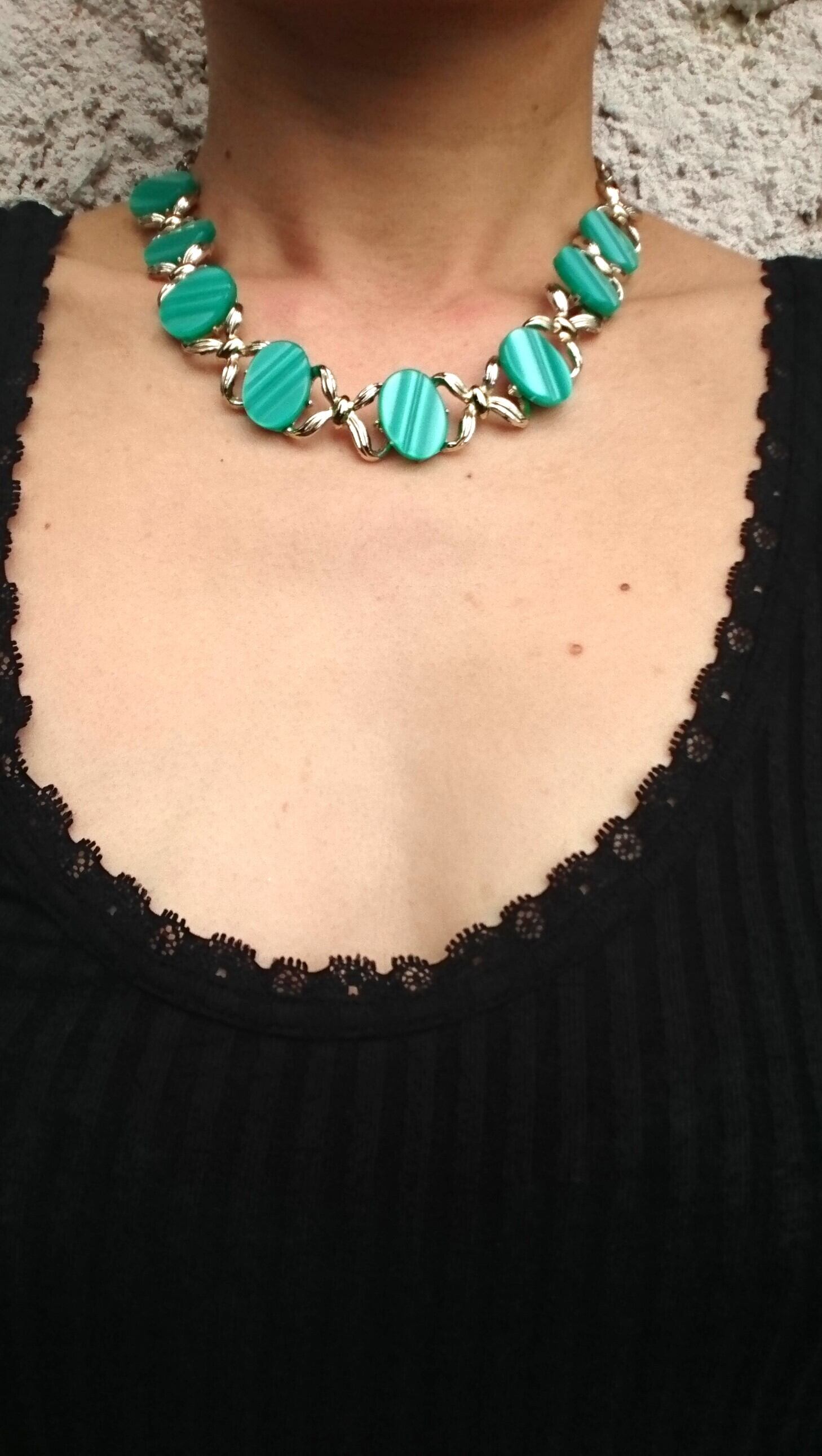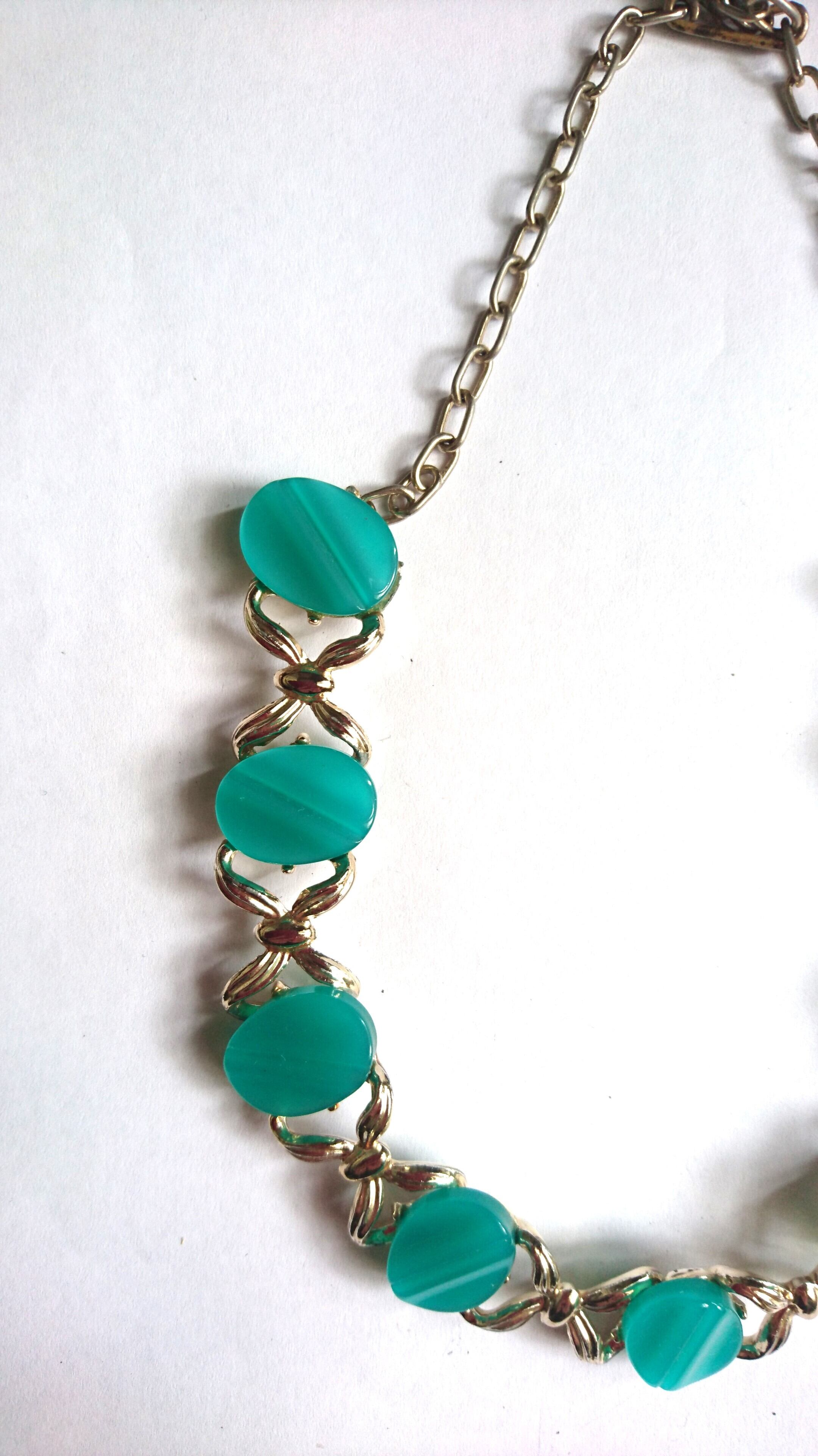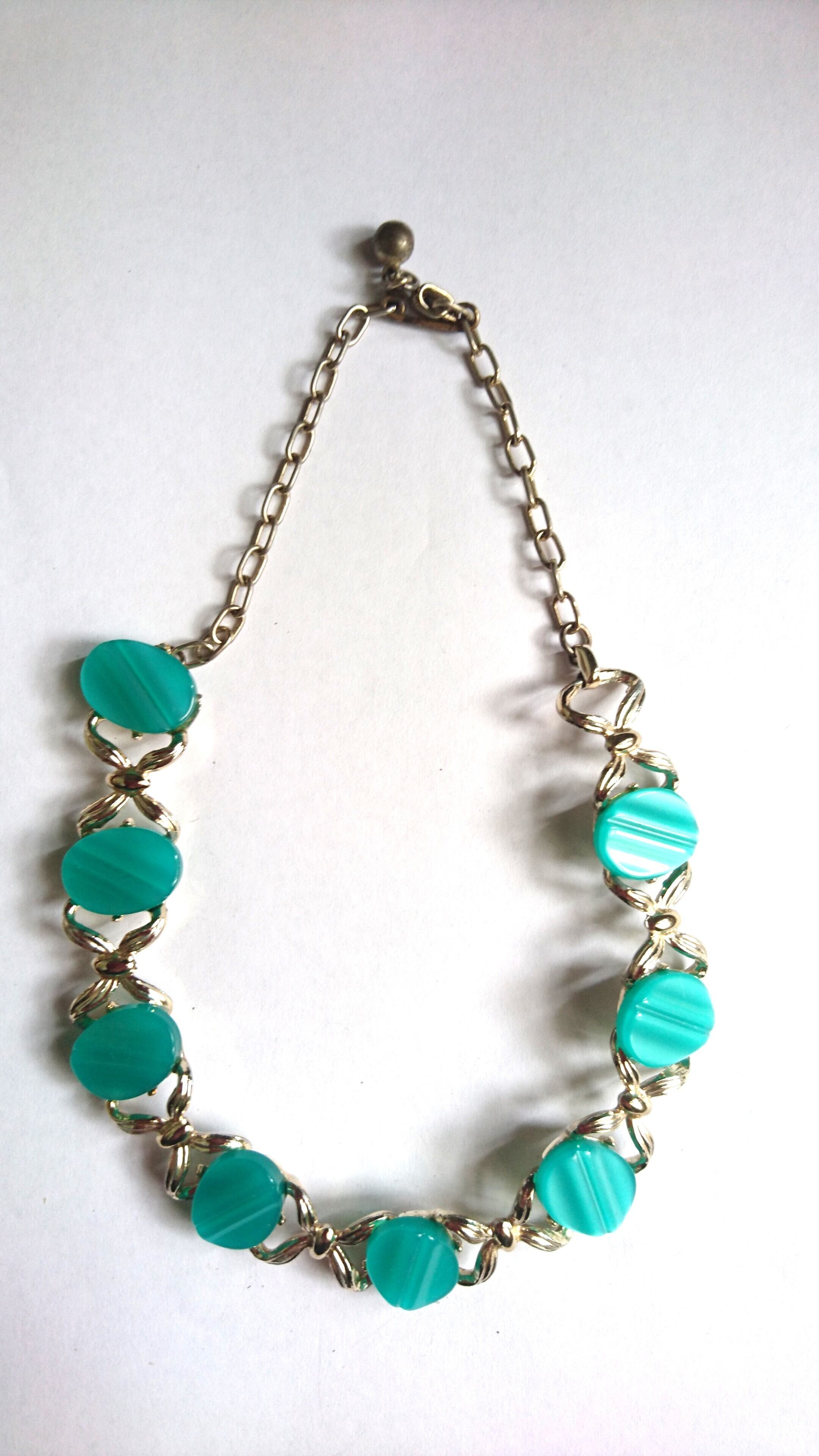 シルバーメタルとターコイズブルー色にチェーン部分がリボンのようなのデザインになっている素敵なネックレスです。