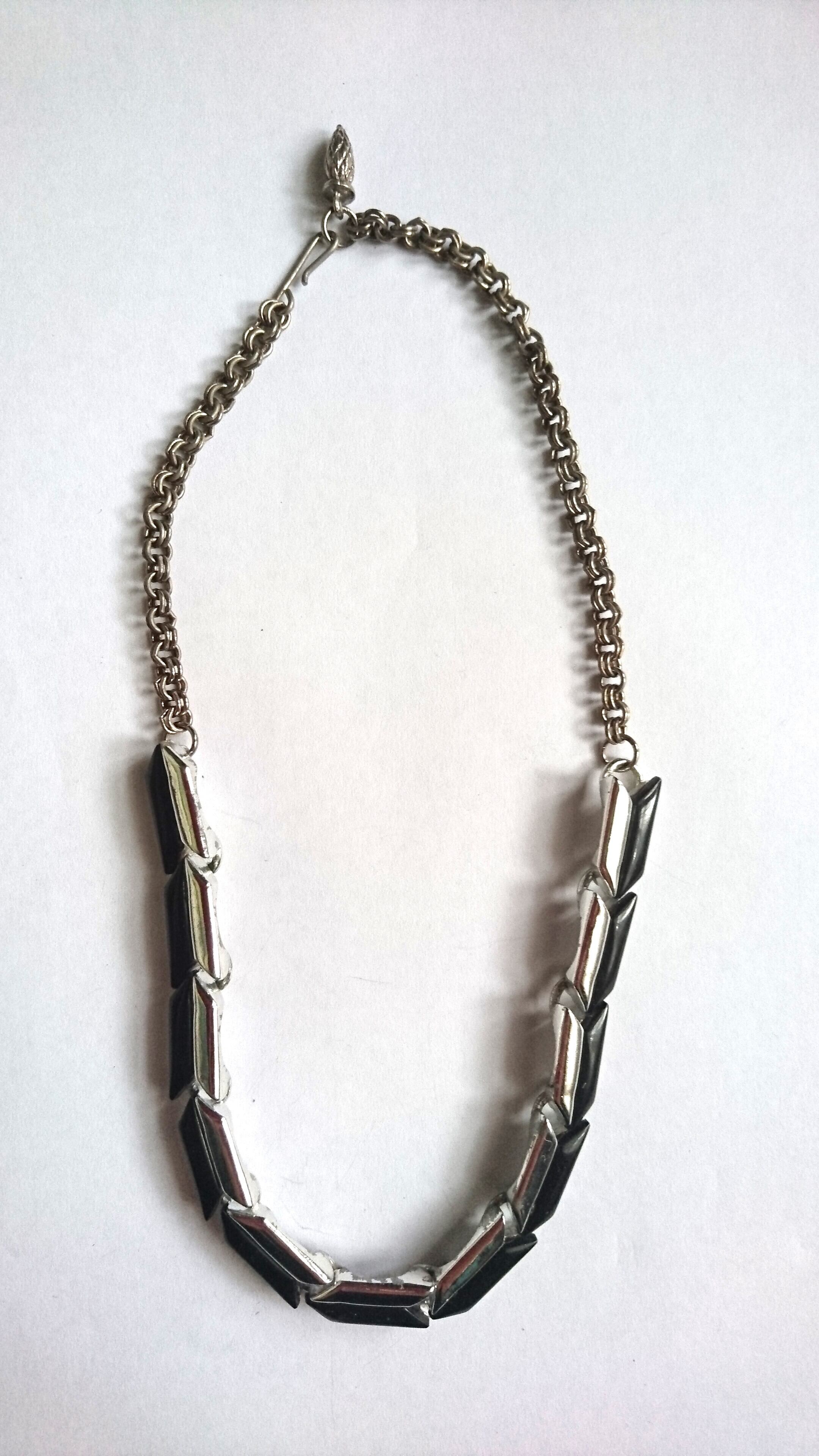 シルバーメタルとブラック色のデザインが素敵なネックレスです。