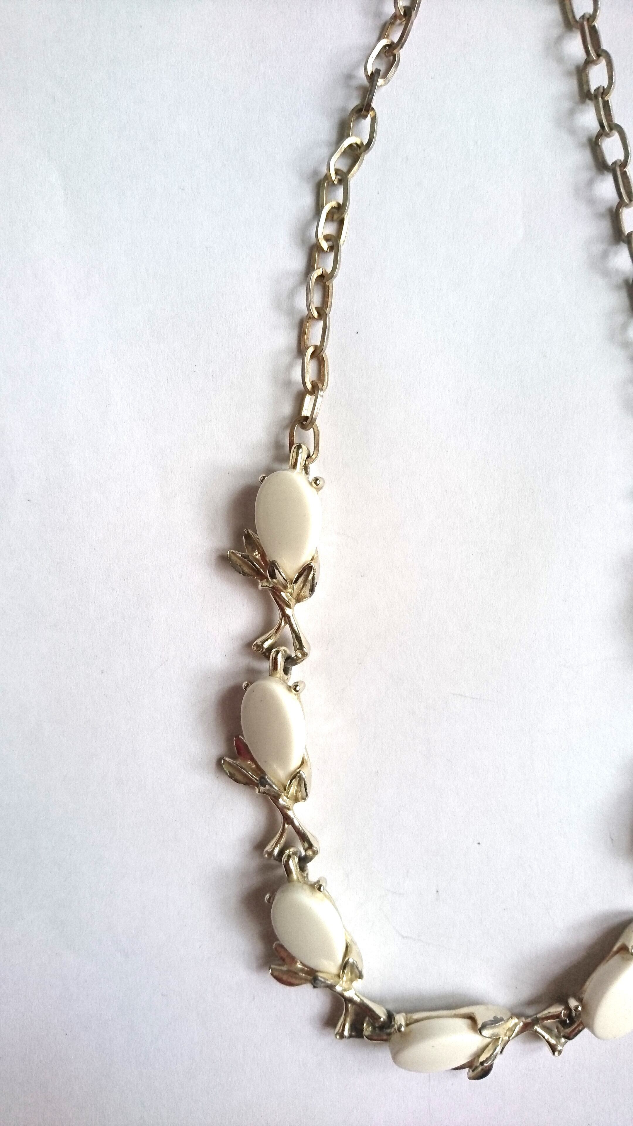 シルバーメタルにホワイト色のデザインが素敵なネックレスです。