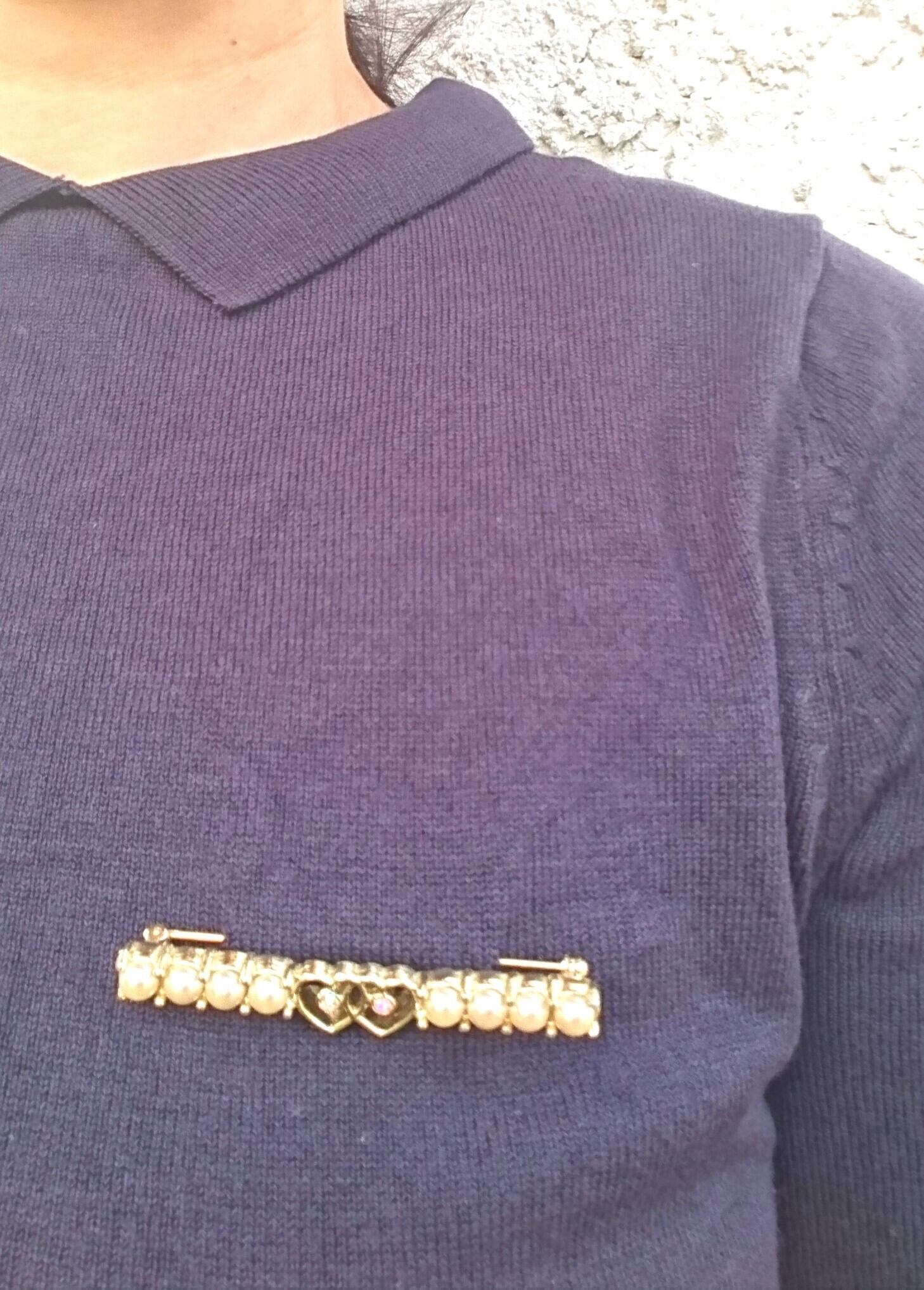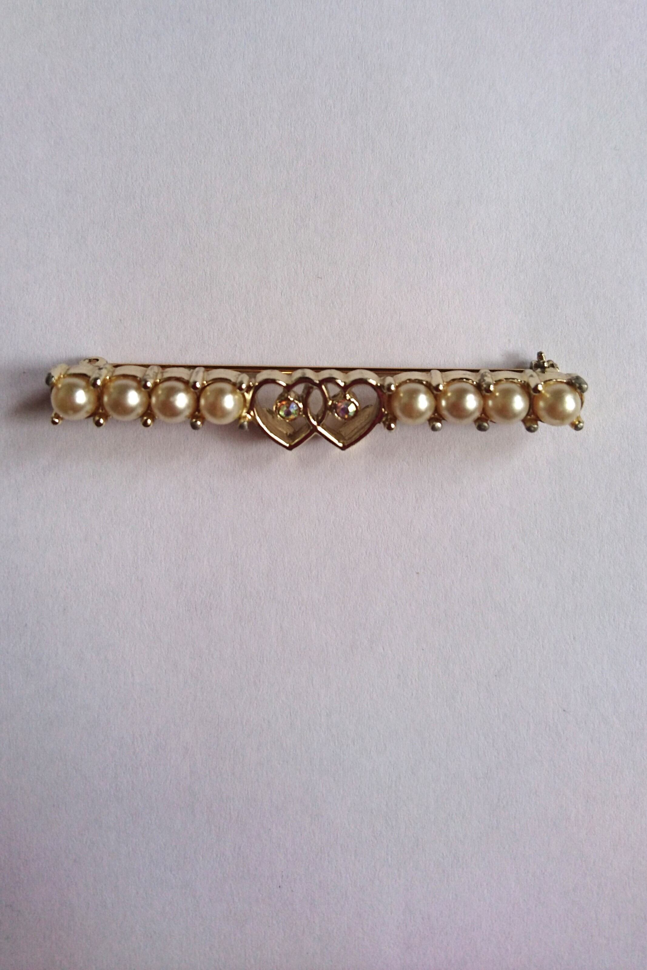 ゴールドメタルにハートとパールビーズのデザインがとても素敵なSARAH COVENTRYのブローチです。