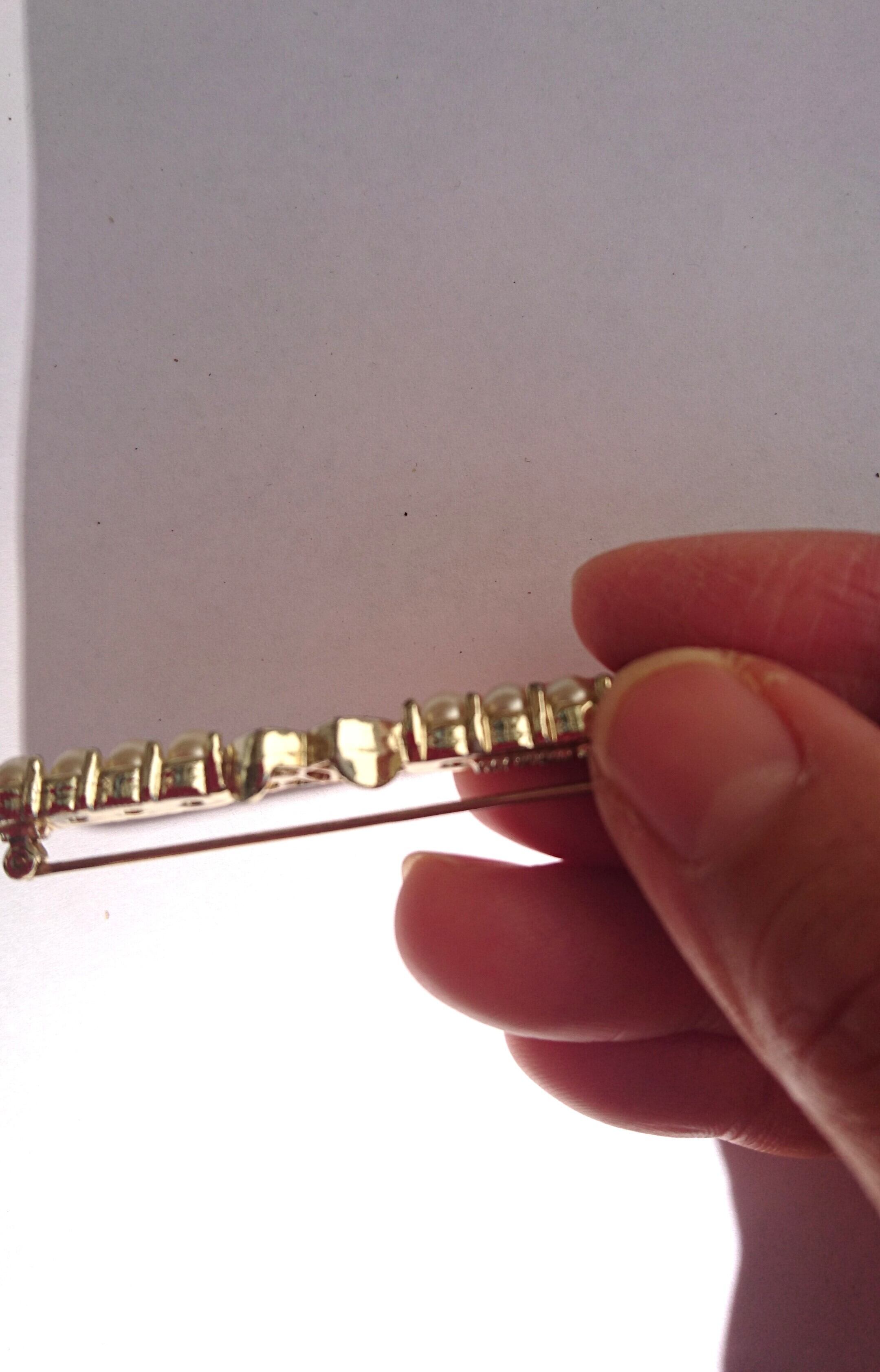 状態 : 裏部分経年による変色、ブローチ下のゴールドメタル部分金属のメッキ剝げがございます。