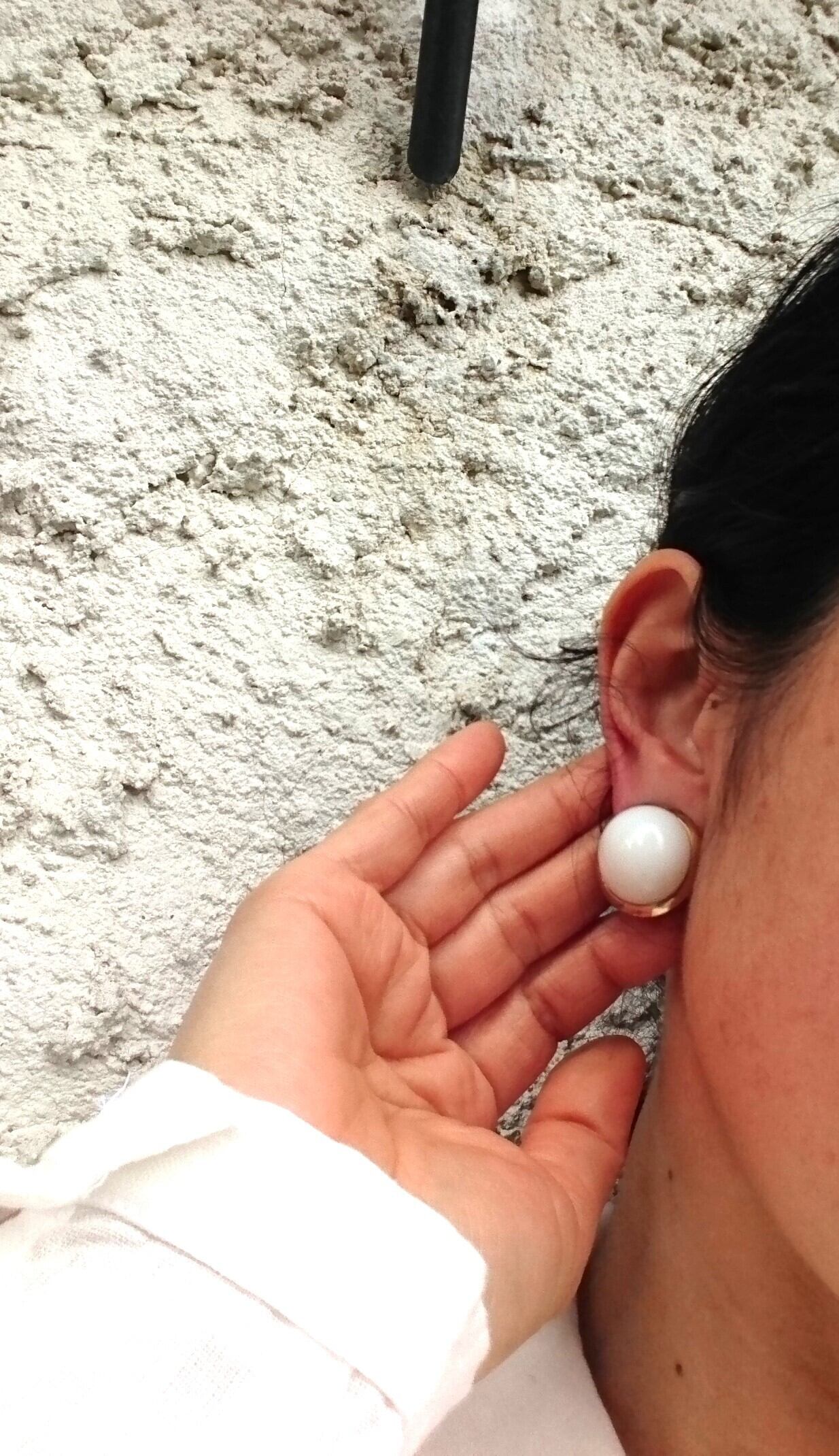 ゴールドメタルにホワイト色でシンプルなデザインが素敵なイヤリングです。