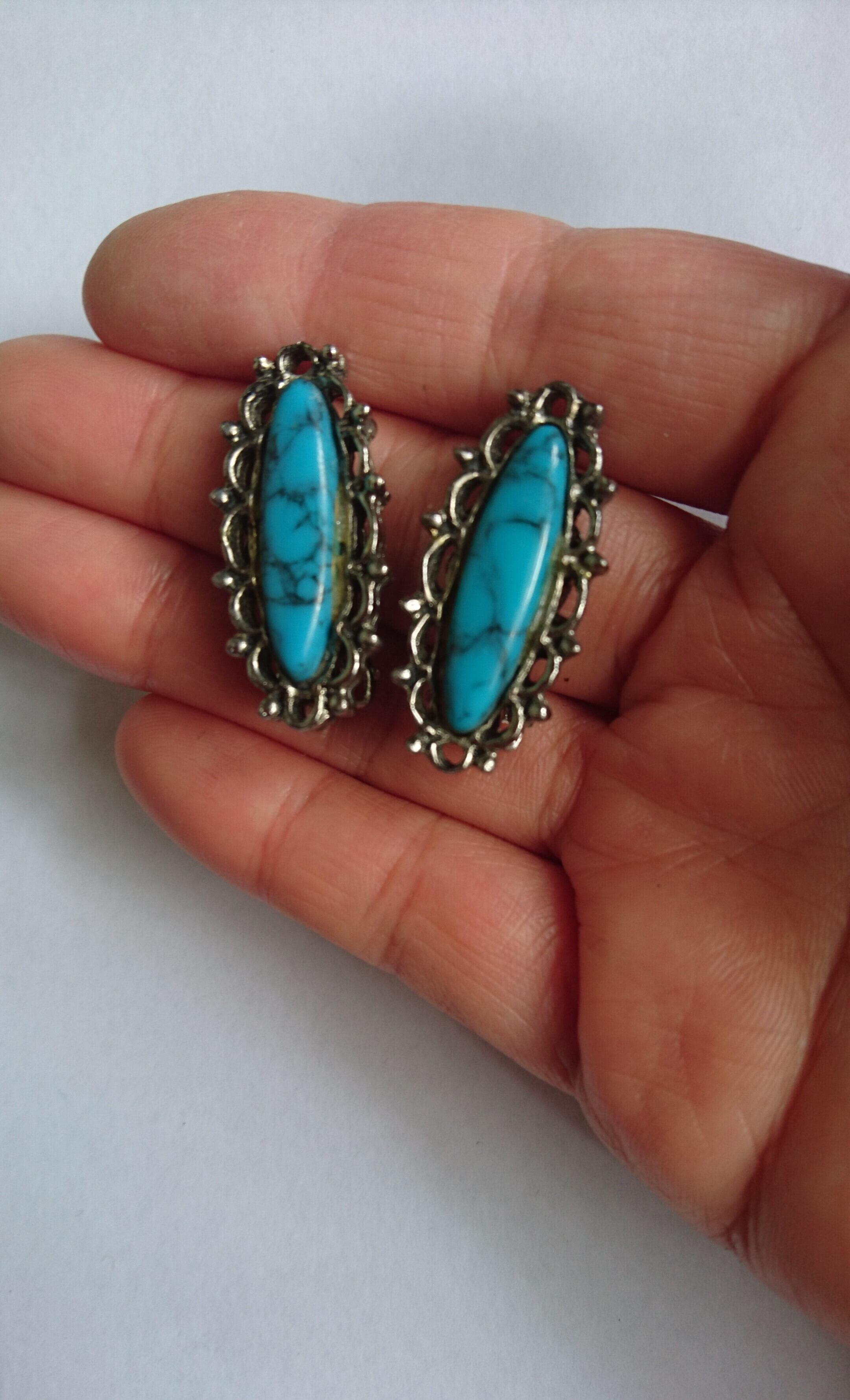 TURQUOISE BLUE OVAL earrings(E-74)