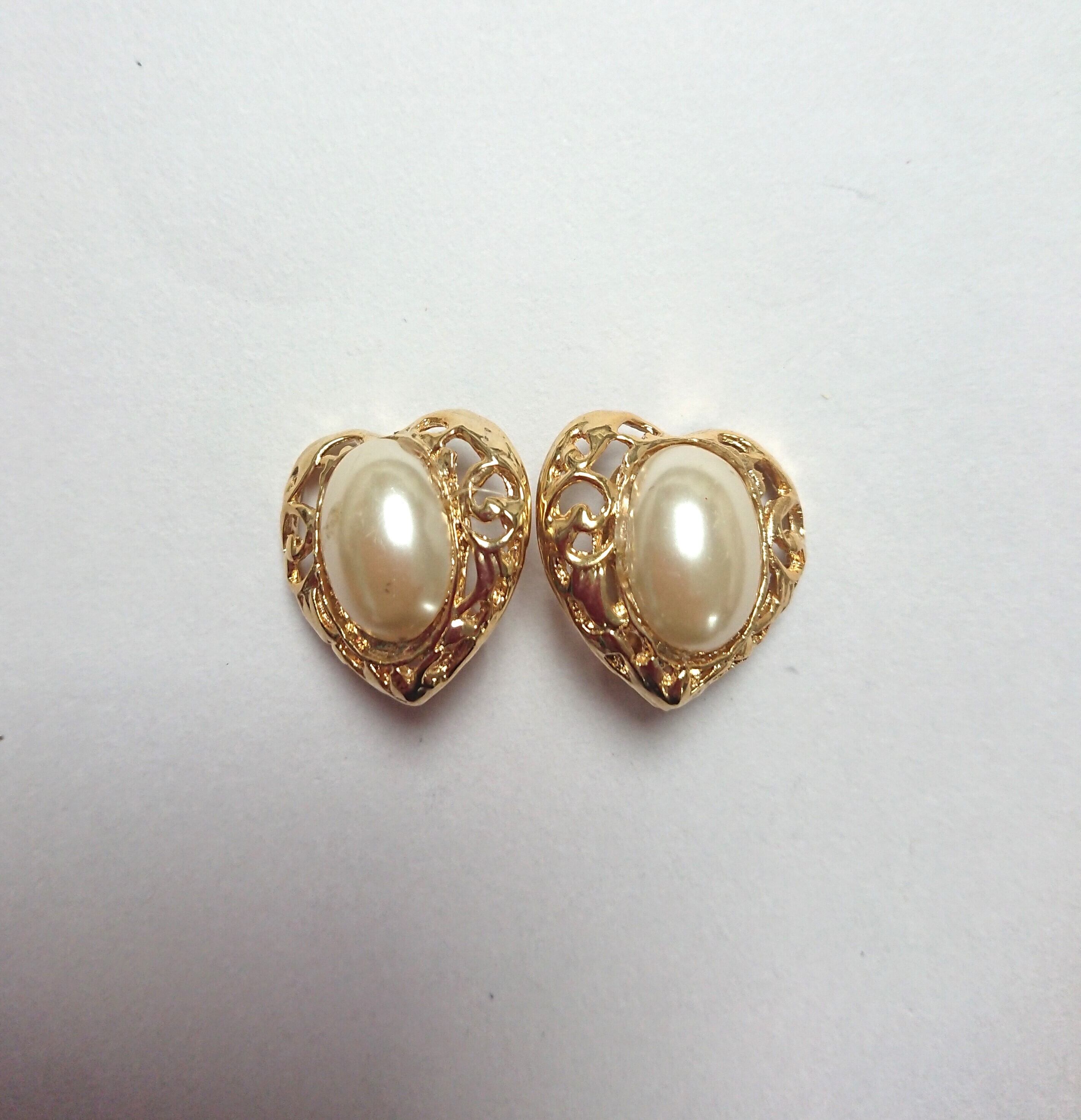 ゴールドメタルにパールビーズのデザインがとても素敵なハートのイヤリングです。