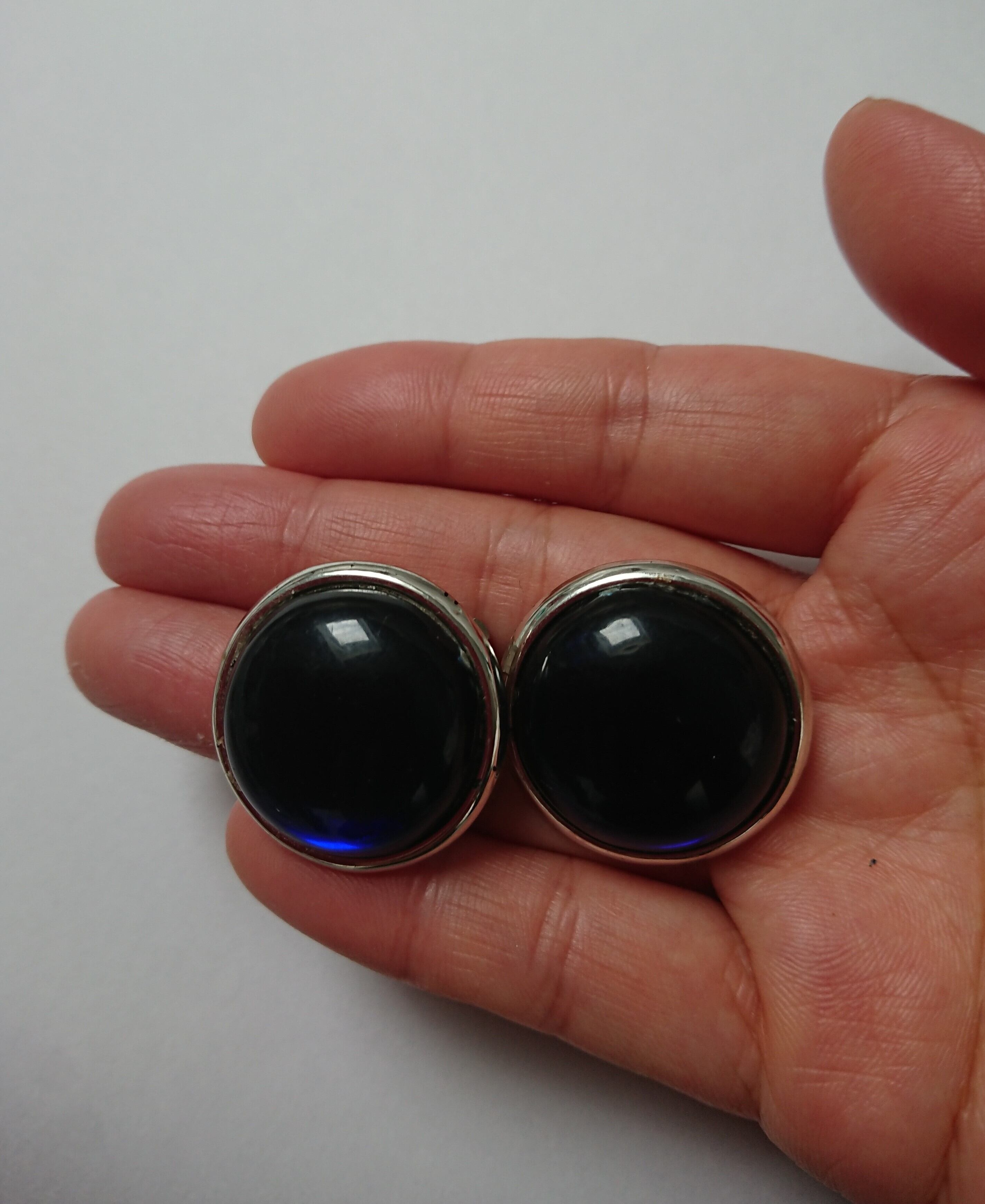 シルバーメタルにブルー色の丸い形のデザインがとても素敵なイヤリングです。